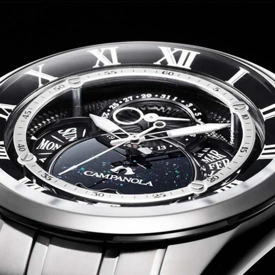 漆と螺鈿(らでん)で描いた宇宙に浮かぶムーンフェイズは、