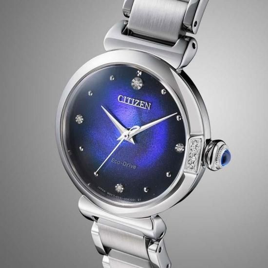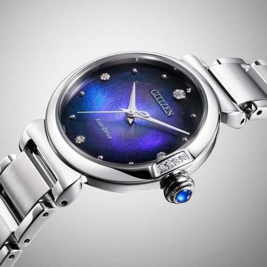 より深く、より静かに、より青く。“青の時、ひとつの世界。”をコンセプトに、光の反射で様々な表情を見せる構造色文字板で海の揺らめきを表現。光発電エコ・ドライブや文字板に再生素材を使用し、地球環境にも配慮しています。