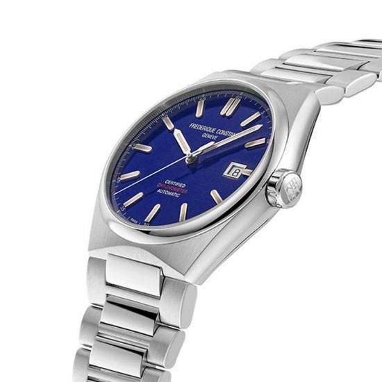 39mmケースと小ぶりになった、フレデリック・コンスタントCOSC認定ライン。COSCは数々の試験を実施し、その基準に合格した時計にのみクロノメーター認定証を発行しています。認定時計は高精度を誇り、ISOに規定された誤差内に収まる精度を有します。文字盤にCERTIFIED CHRONOMETERと記されています。まさに、フレデリック・コンスタントの高精度追求の証となる、タイムピースです。ブルー文字盤に合わせ、ネイビーカラーのインターチェンジャブル仕様の替えヌバックストラップが付属し、簡単に付け替えが楽しめます。