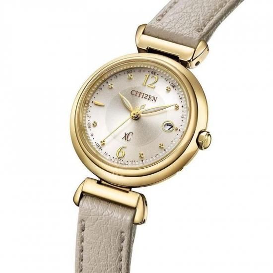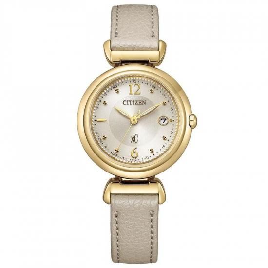 落ち着きのあるアンバーイエローのケースに、ライトベージュの文字板とグレージュのバンドを組み合わせ、カジュアルな印象の中にも洗練された大人っぽさを感じさせるデザインです。バンドには、肌なじみの良い植物(リンゴ)由来の素材を使用し、本革のような質感に仕上げています。
