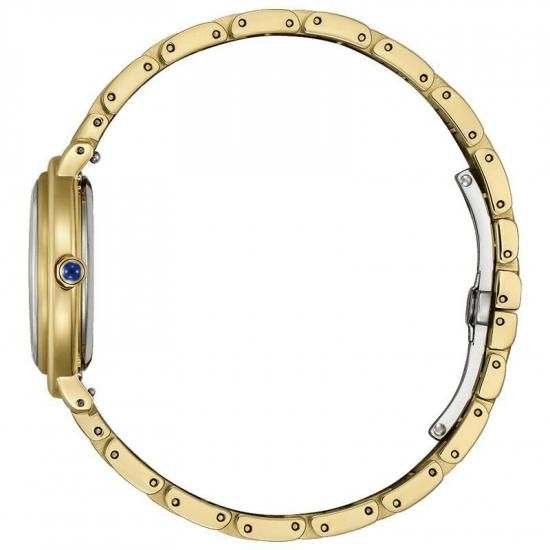 深い海から見上げた、煌めく水の波紋をイメージして、揺らめく青色の構造色文字板が、生命観溢れる神秘的な海を表現。シチズンの1960年代の時計からインスピレーションを得たデザインで、太めのバーインデックスと先端に向かってすっと細く伸びた針は、力強さと繊細さが調和した、洗練された印象を演出しています。ケースは、アンティークウオッチのような印象と上質感を漂わせるライトゴールドを採用し、3ポイントのダイヤモンドを配置。ジュエリーのような美しさの中にどこかマニッシュな印象を残します。