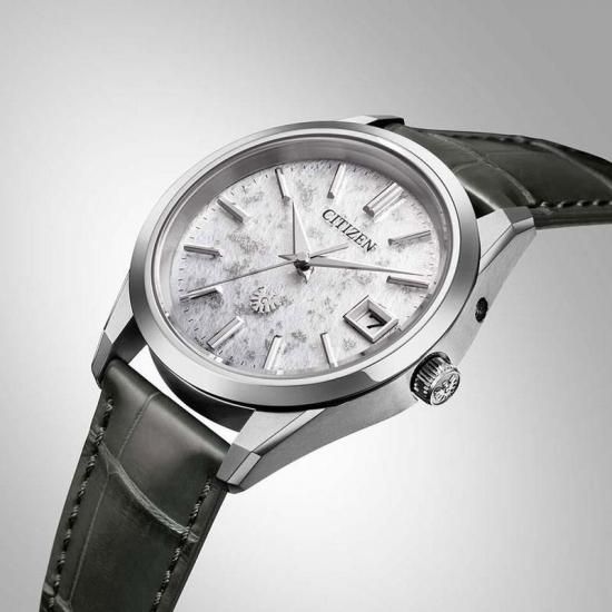 「冬の早朝の情景」をモチーフに、砂子蒔き(すなごまき)と呼ばれる伝統技法によりプラチナ箔を雪のように舞い散らした土佐和紙を採用。さらにグレーのグラデーション印刷を施した上板とのコンビネーションで、厳しくも美しい冬の朝の情景を繊細に描き出したモデルです。