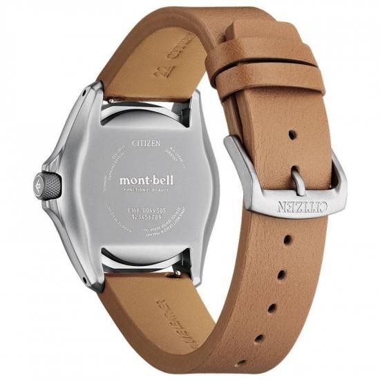ダイバーズウオッチ用に開発されたCal.E168を搭載。アウトドアのハードな環境にも耐え抜くタフさ、昼夜問わない時刻の見やすさ、操作の簡単さといった、優れた実用性を備える1本です。ケースには打ちキズにも強いデュラテクトMRKを施しています。革バンドモデルは、シリコーンラバーバンド付属の2way仕様。ご自身でシーンに合わせて交換できるインターチェンジャブル構造です。裏ぶたレス構造のケースバックには、モンベルのブランドロゴをレーザー刻印。CITIZEN×mont-bellのロゴが入った専用ボックス付きです。