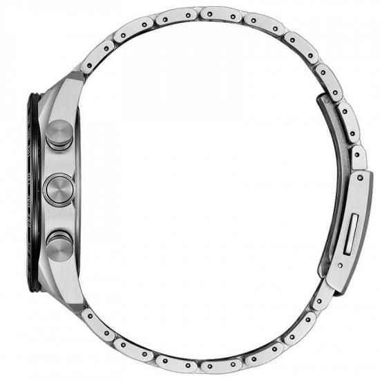 シチズン独自の技術で開発した結晶チタニウムを中駒に採用。デュラテクトプラチナを重ねることで結晶模様がプラチナの輝きをまとい、存在感を放ちます。